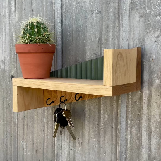 Key Holder Olive Green – Pine Wood - Wall Mounted Shelf | Boho and Farmhouse Style | Home Décor & Organization